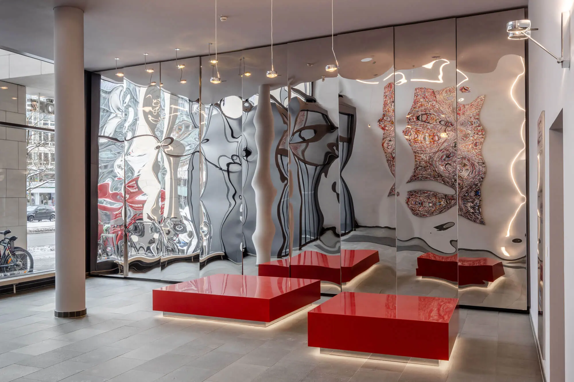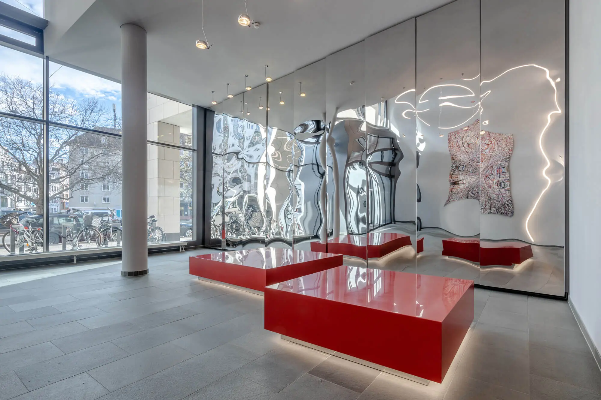 Foyer Dachauer Straße 63Neugestaltung einer Eingangshalle, Nymphenburger HöfeBauherrGenerali Real Estate S.p.A.Fertigstellung2020BesonderheitenGemälde: Michael Griesbeck Ähnliche Projekte Wohn- und Geschäftshaus in München Westend Treppe Maximiliansbrücke Büro- und Geschäftshaus, Sendlinger Straße München