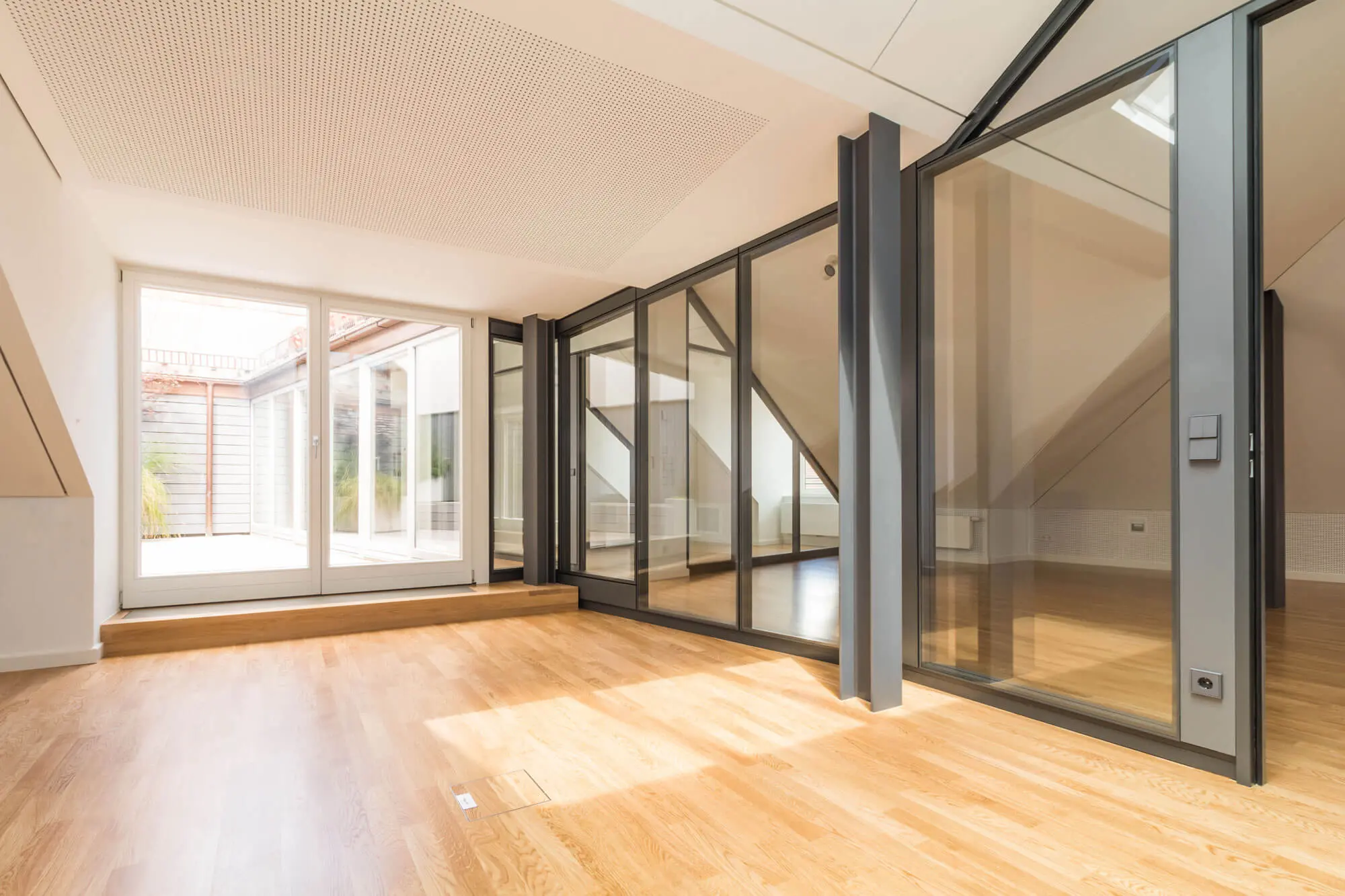 Mieterausbau Dachgeschoß, Sendlinger Straße München Innenausbau einer Bürofläche im DachgeschoßBauherrGenerali Real Estate S.p.A.Eigentümerseit 1. Februar 2020Commerz Real / hausInvestFertigstellung2017StandortMünchen Ähnliche Projekte Wohn- und Geschäftshaus in München Westend Treppe Maximiliansbrücke Foyer Dachauer Straße 63